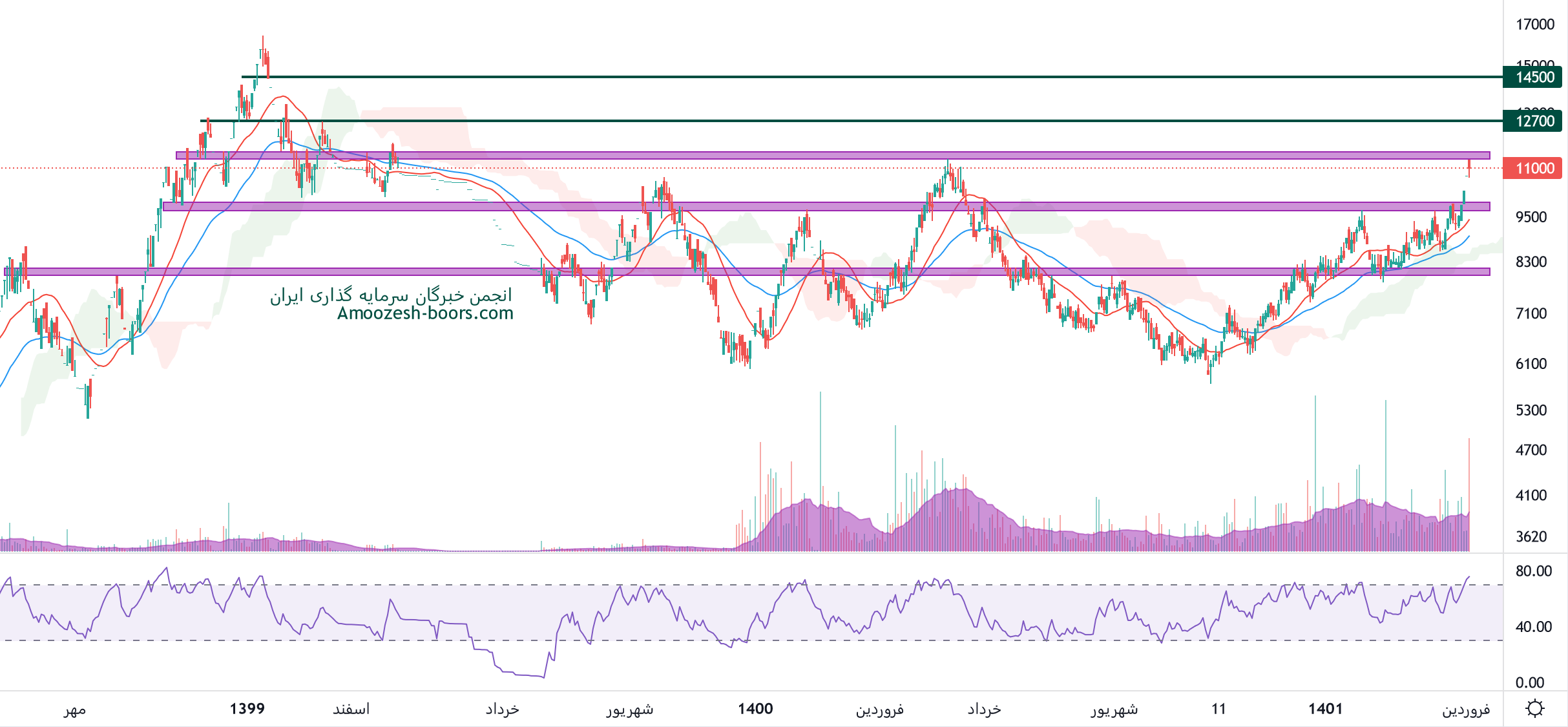 نماد کپارس درگیر محدوده مقاومتی 11500 ریال میباشد، در صورت عبور قیمت از این سطح مقاومتی، مقاومت بعدی 12700 ریال ارزیابی میگردد، همچنین در صورت ورود سهم به فاز اصلاحی، اولین حمایت 10000 ریال خواهد بود.