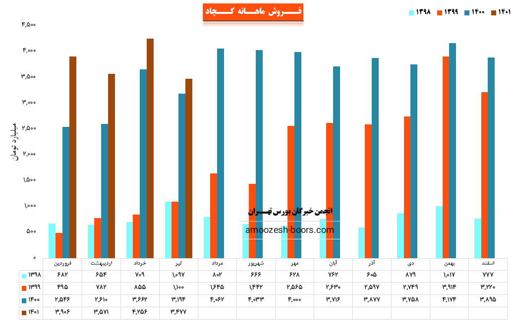کچاد در تیر ماه حدود بیش از 1 میلیون تن از محصولات خود را به فروش رسانده که این میزان در مقایسه با حجم فروش ماه گذشته خود حدود 1% افزایش پیدا کرده است.