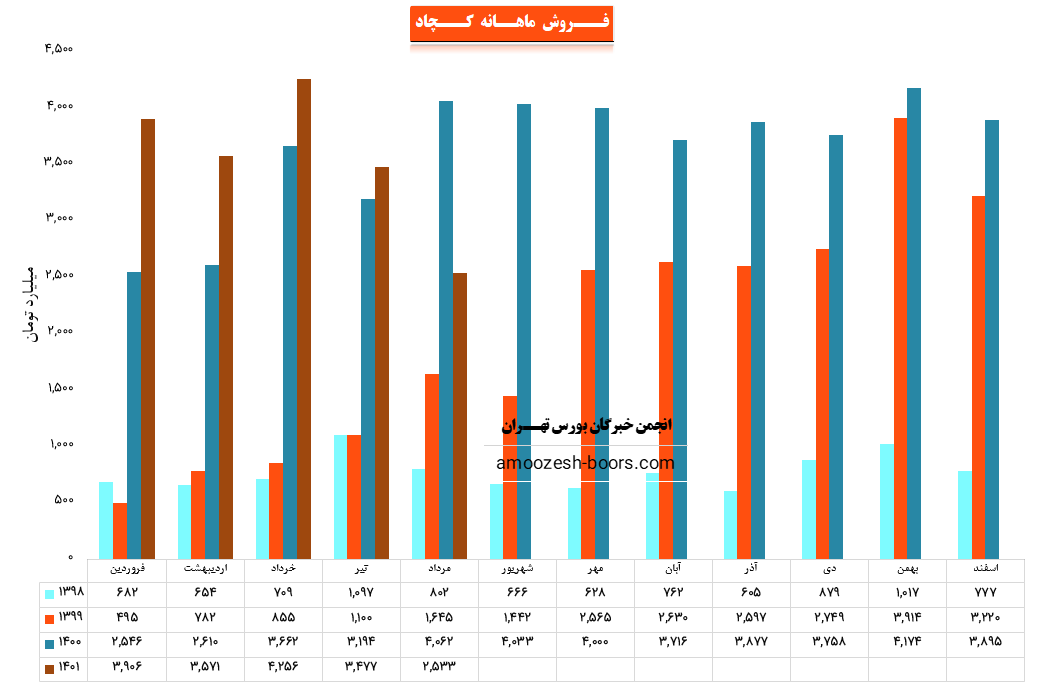 همچنین کچاد با ثبت فروش ۱۲ هزار میلیارد تومانی در انتهای سه ماهه ابتدایی سال توانست حدود بیش از ۳۷ % از پیش بینی فروش سالانه خود را محقق سازد.