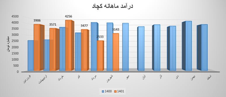 کچاد نسبت به دوره 1 ماهه مشابه سال قبل 22% کاهش درآمد داشته است.