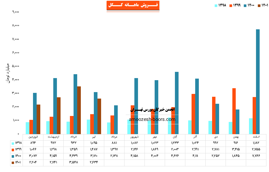 کگل با ثبت فروش حدود ۹ هزار میلیارد تومان نتوانست بیشتر از ۱۶ % از پیشبینی فروش سال خود را محقق سازد.