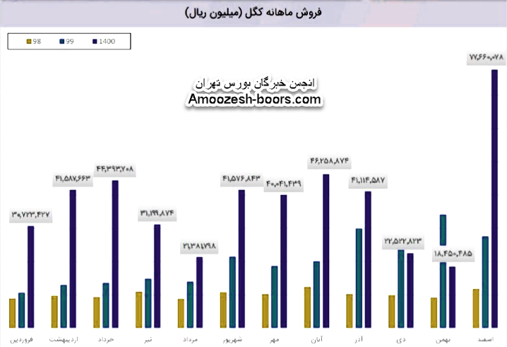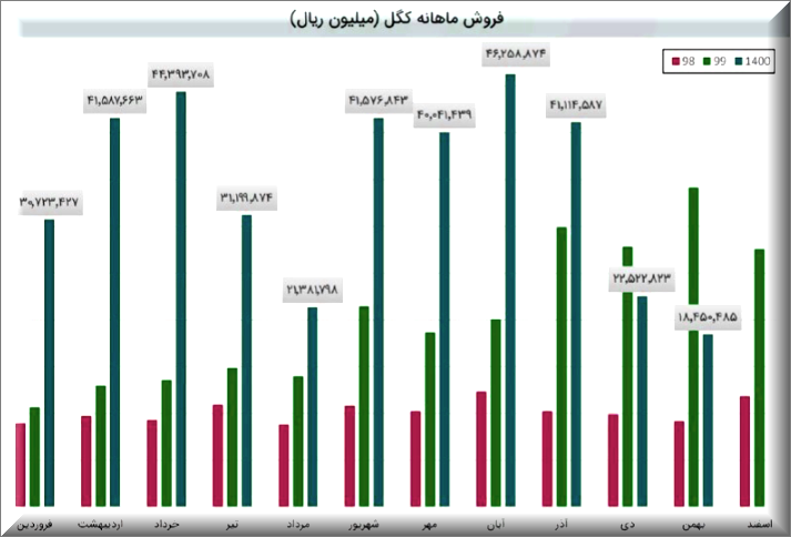 کگل در این ماه 563 هزار تن گندله را به فروش (داخلی) رساند که رشد 44 درصدی نسبت به ماه گذشته نشان می دهد همچنین نرخ فروش این محصول نسبت به ماه قبل کاهش 3 درصدی داشته است