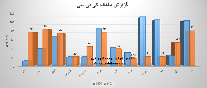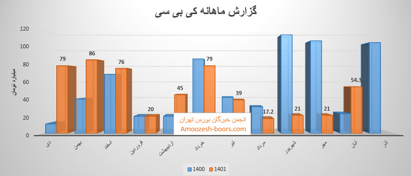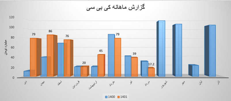 درآمد نماد کی بی سی 72 درصد نسبت به میانگین و 56درصد نسبت به ماه قبل کاهش داشته است .
