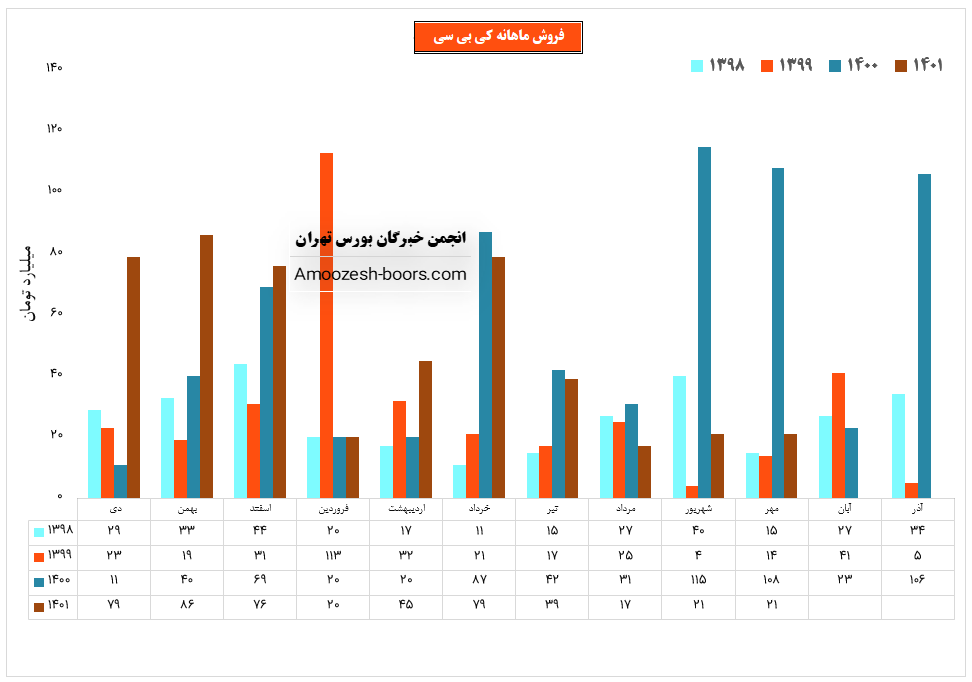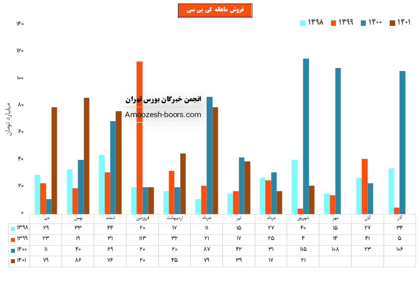 شرکت کی بی سی در گزارش فعالیت آبان 1400 معادل 543,054 میلیون ریال از محصولات خود را به فروش رسانده است که نسبت به دوره 1 ماهه مشابه سال قبل 136% افزایش داشته است.همچنین درآمد سهم کی بی سی در مقایسه با ماه قبل 159% و نسبت به میانگین ماهانه 12درصد افزایش را تجربه نموده است.