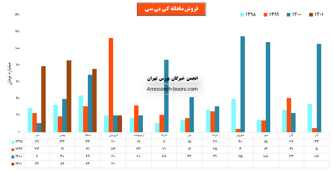 سهم کی بی سی کی بی سی در اردیبهشت ماه ۱۴۰۱ حدود مبلغ ۲۰ میلیارد تومان درآمد داشته که این میزان در مقایسه با ماه گذشته و همچنین در مقایسه با مدت مشابه سال گذشته 125% رشد پیدا کرده است.