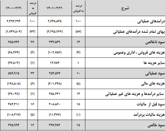 سود عملیاتی: 28 میلیارد تومان که نسبت به دوره مشابه گذشتـه 37% افزایش یافته است.
